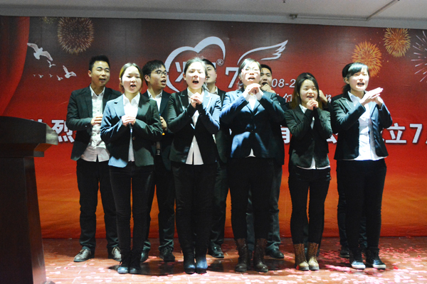 慶典現(xiàn)場(chǎng),全體員工同唱司歌